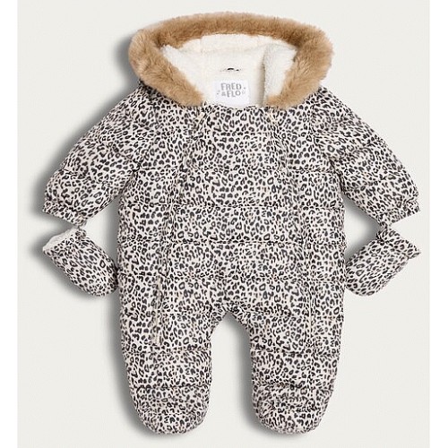 F&F Girls Leopard Print Faux Fur Hooded Waterproof Snowsuit in Multi Brown