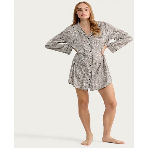 CoolEase Satin Leopard Print Revere Pyjamas in Multi Brown