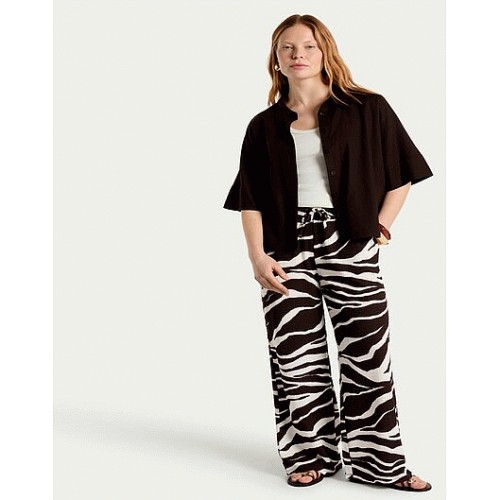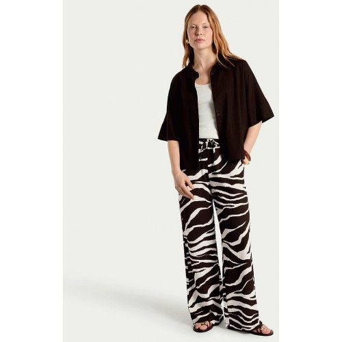Zebra Print Wide Leg Drawstring Trousers in Multi Brown