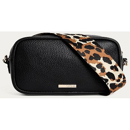 SACHA Leopard Strap Crossbody Camera Bag in Black