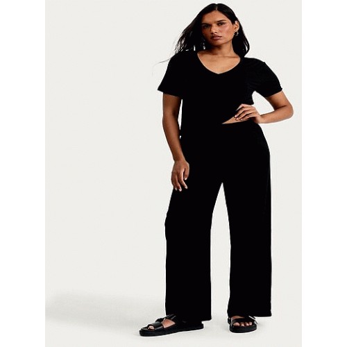 F&F Girls Crinkle Textured Wide Leg Drawstring Trousers in Black