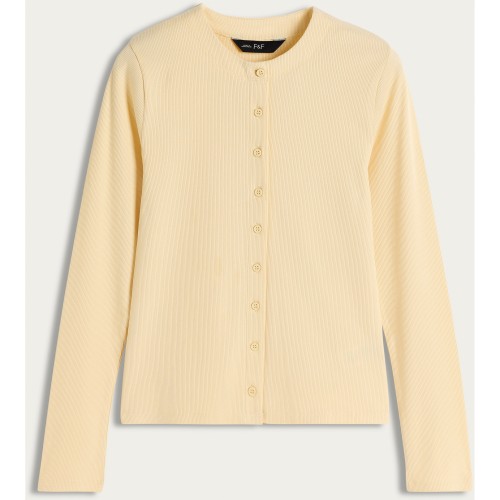 Cotton Rich Ribbed Button Up Long Sleeved Top in Yellow