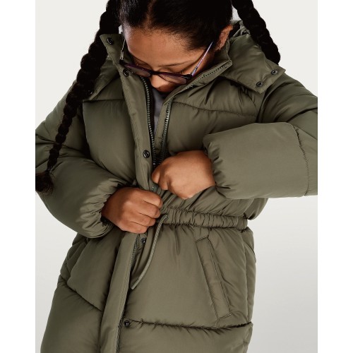 F&F Girls Hooded Longline Shower Resistant Puffer Coat in Khaki