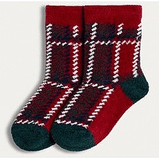 Unisex Check Matching Family Christmas Cosy Socks in Red