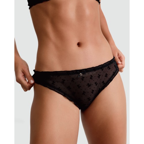Mesh Bow Pattern Brazilian Knickers in Black