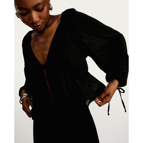 Tie Detail Long Sleeved Co-ord Blouse in Black