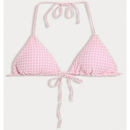 OH ME OH MY Gingham Triangle Halter Neck Bikini Top in Pink