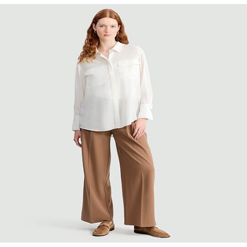 Satin Long Sleeved Pocket Front Shirt in Cream