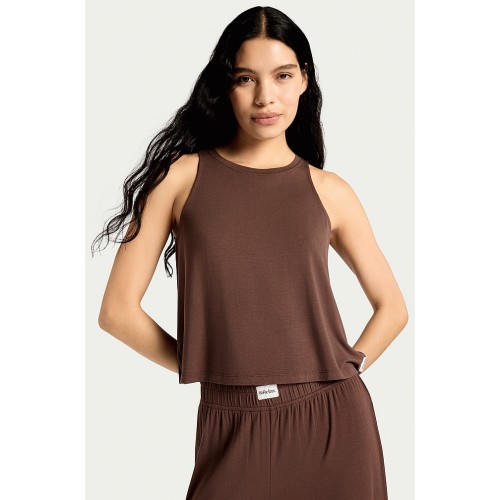 Modal Rich Sleeveless Pyjama Top in Chocolate