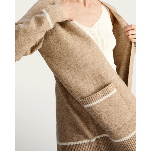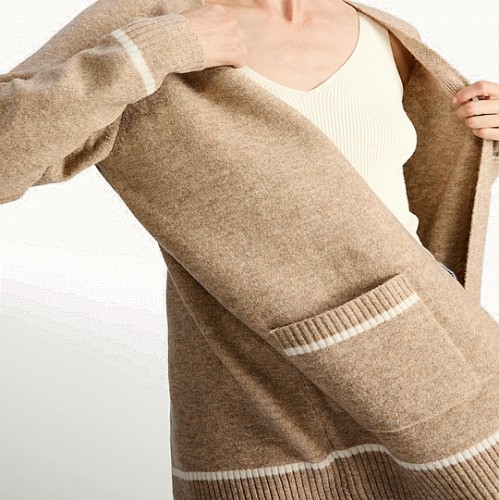 Patch Pocket Open Front Cardigan with Wool in Mink