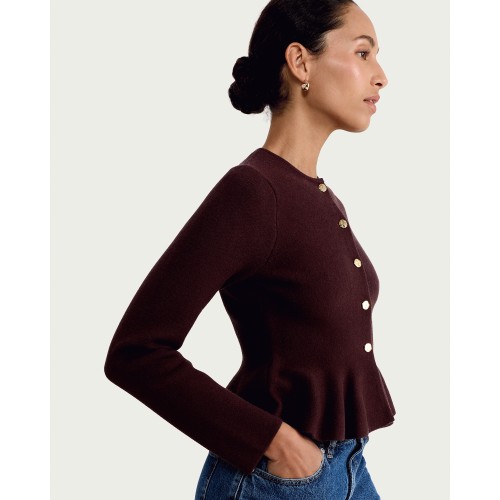 F&F Peplum Hem Buttoned Cardigan in Burgundy