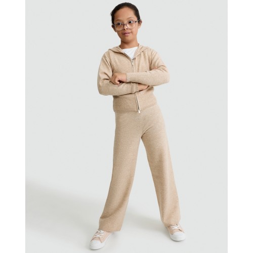 F&F Girls 2-Piece Knitted Hoodie and Trousers Set in Brown