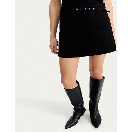 Faux Suede Belted A-Line Mini Skirt in Brown
