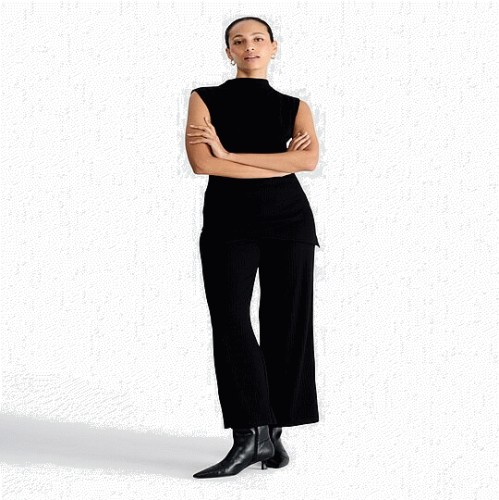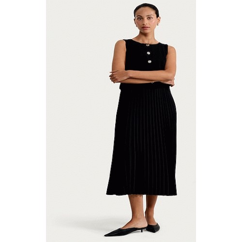 Polyamide Pleated Crew Neck Sleeveless Top in Black