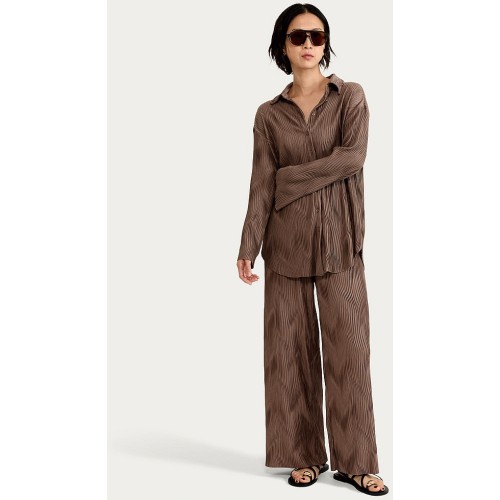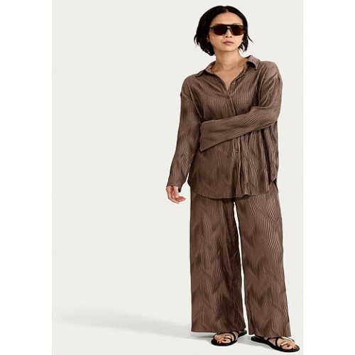 Plisse Wave Textured Wide Leg Co-ord Trousers in Brown