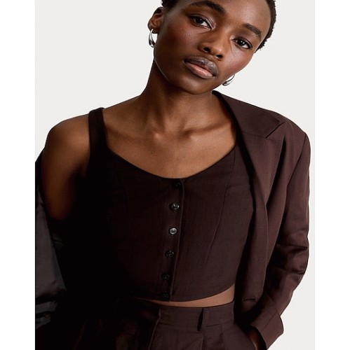 Button Front Cropped Waistcoat in Brown