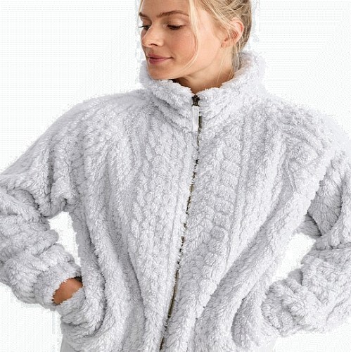 Fleece Cable Knit Zip Up Pyjama Jacket in Cream