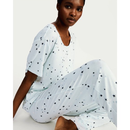 Star Print Short Sleeved Pyjama Top in Multi Blue