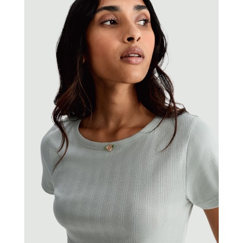 Rise by Zara McDermott Pointelle Short Sleeved Pyjama Top in Green