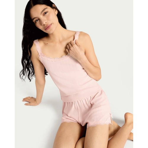 2-Piece Pure Cotton Pointelle Cardigan and Shorts Set in Pink