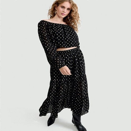 Tiered Metallic Polka Dot Co-ord Midi Skirt in Black