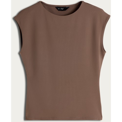 F&F Polyamide Asymmetric Neck Sleeveless Top in Chocolate