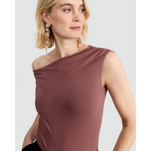 Polyamide Asymmetric Neck Sleeveless Top in Chocolate