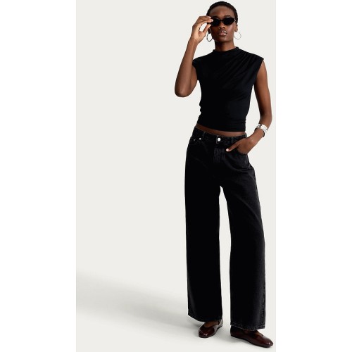 F&F Polyamide Draped Ruched Sleeveless Top in Black