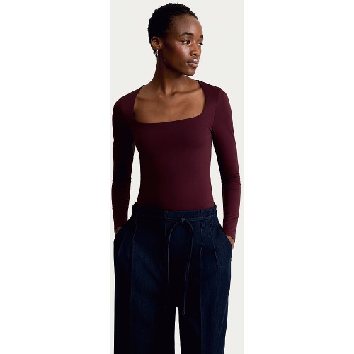 Polyamide Square Neck Long Sleeved Bodysuit in Burgundy