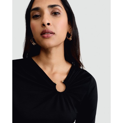 Polyamide Ring Detail Long Sleeved Top in Black