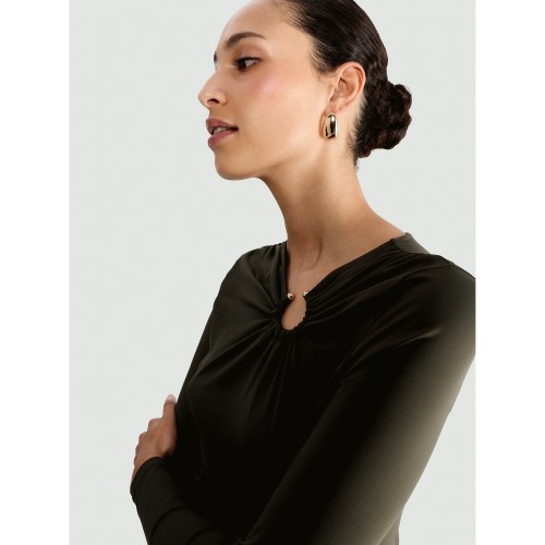 Polyamide Ring Detail Long Sleeved Top in Olive