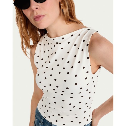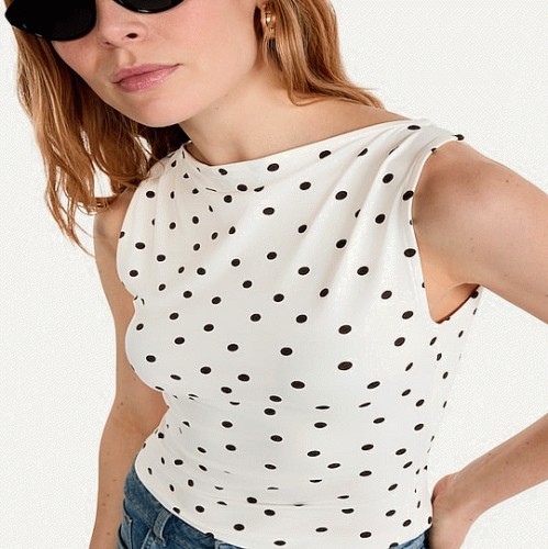 Polyamide Polka Dot Sleeveless Top in Cream