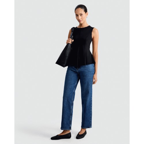 Polyamide Slash Neck Sleeveless Top in Black