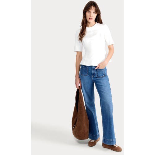 Ponte Seam Peplum Hem Top in Cream