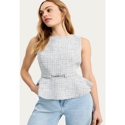 Boucle Textured Peplum Hem Sleeveless Top in Blue