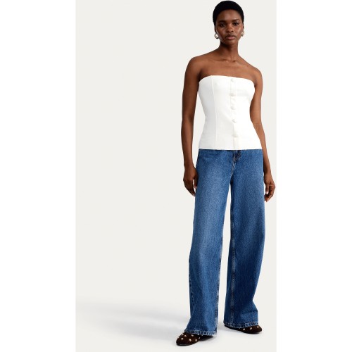 Cotton Rich Embroidered Top and Shorts Set with Linen in Cream
