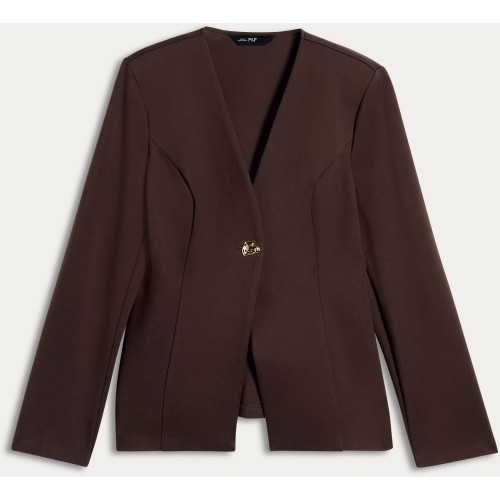 Ponte Single Metal Button Jacket in Brown