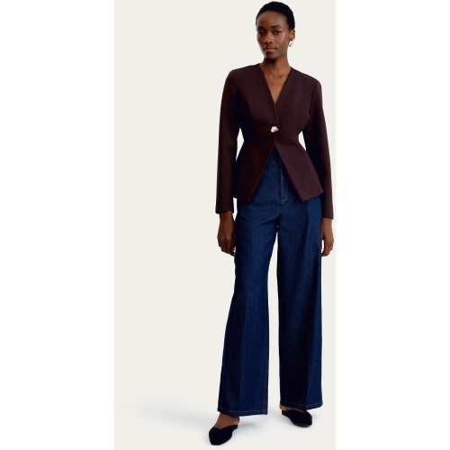 Ponte Single Metal Button Jacket in Brown