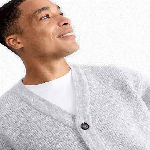 Knitted Waffle Textured Button Up Cardigan in Grey