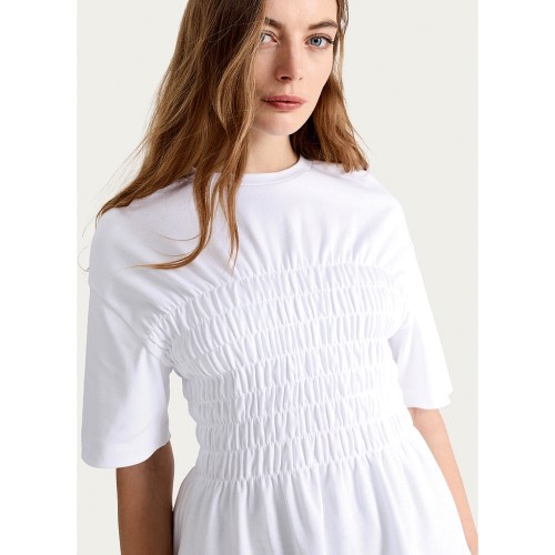 The F&F Edit Pure Cotton Shirred Waist Short Sleeved Top in White