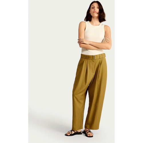 Lyocell Blend Pleated Barrel Leg Belted Trousers in Olive