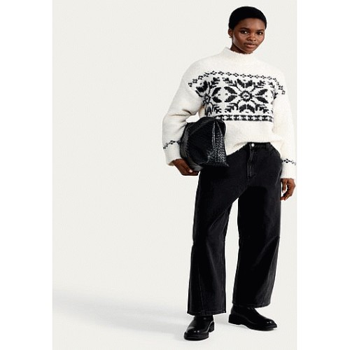 Pure Cotton Seam Detail Barrel Leg Jeans in Black