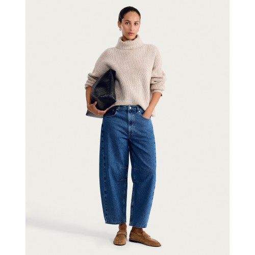 Pure Cotton Barrel Leg Jeans in Navy