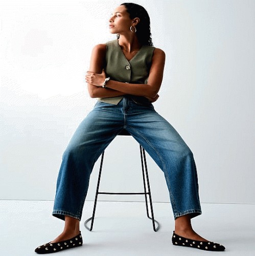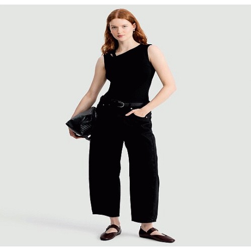 Pure Cotton Seam Detail Barrel Leg Jeans in Black
