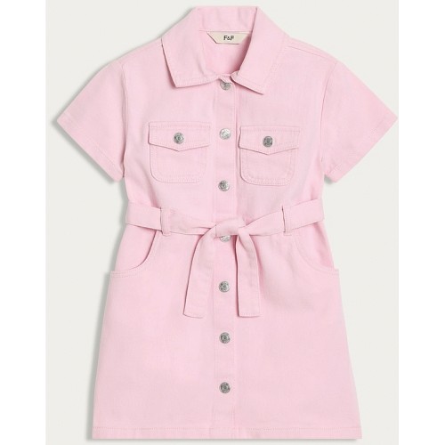 F&F Girls Pure Cotton Belted Denim Dress in Pink
