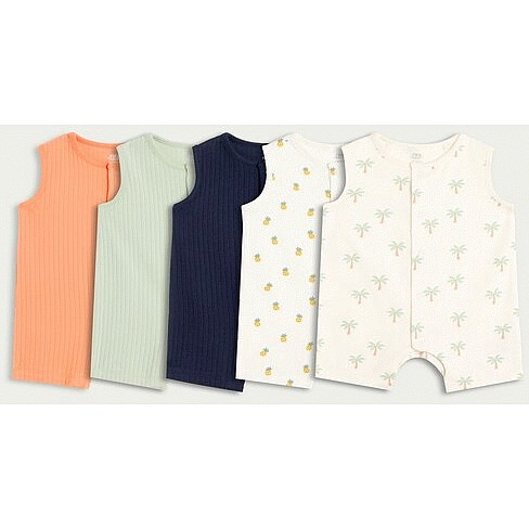5-Pack Pure Cotton Sleeveless Rompers in Navy