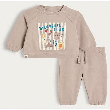 2-Piece Cotton Rich Breakfast Club Sweatshirt and Joggers Set in Beige