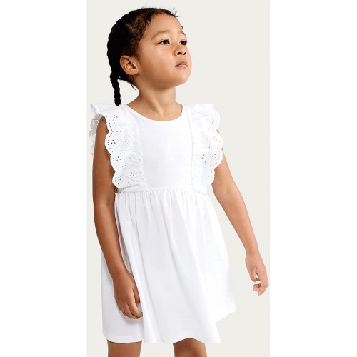 F&F Girls Pure Cotton Broderie Frill Dress in Cream