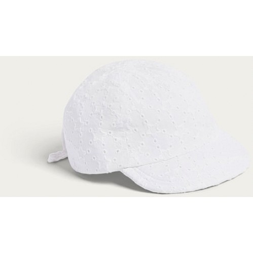 Baby Pure Cotton Broderie Anglaise Cap in White