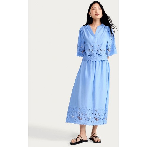 Pure Cotton Broderie Cut Out Midi Co-ord Skirt in Blue